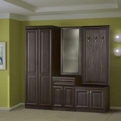 Серия включает все необходимые предметы мебели для прихожей: 1-, 2- дверные и угловой шкафы для одежды, тумба с панелью с крючками и тумба с зеркалом.